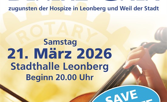 Benefizkonzert des Rotary-Clubs Leonberg-Weil der Stadt: Musik für einen guten Zweck Am Freitag, 21. März 2026, lädt der Rotary-Club Leonberg-Weil der Stadt zu seiner traditionellen Benefiz-Gala in die Stadthalle Leonberg ein. Beginn ist um 20 Uhr. Der Erlös des Abends kommt erneut den Hospizen in Leonberg sowie dem ambulanten Hospizdienst in Weil der Stadt zugute. Damit verbindet die Veranstaltung hochkarätige sinfonische Musik mit einem klaren sozialen Anliegen in der Region. Im Mittelpunkt steht das Sinfonieorchester Leonberg unter der Leitung von Alexander G. Adiarte. Das Publikum erwartet ein sorgfältig gestaltetes Programm, ...